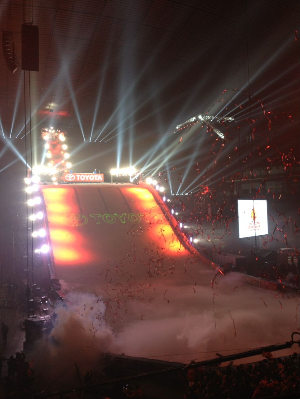 んでんで、スノボのジャンプ大会TOYOTA BIG AIR ! 世界のライダーと日本のライダーが競うのです。