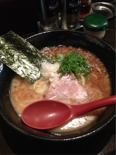 まろやかな味噌ラーメンで、私が味噌ラーメンを好きになったきっかけのお店です。炒め野菜と、おろし生姜がアクセント∩^ω^∩。